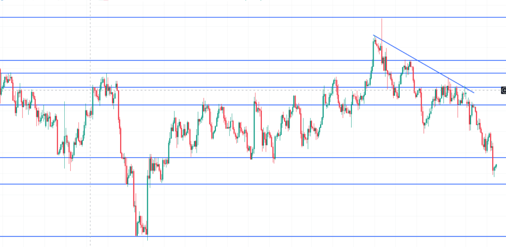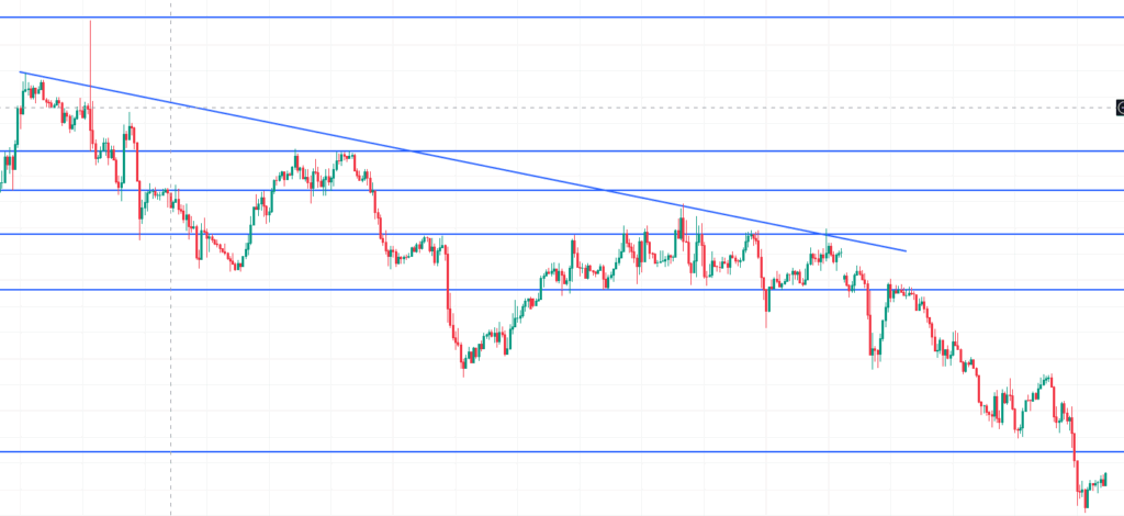 ここまでくると誰が見ても下降トレンドとわかる、明確な下降トレンド。