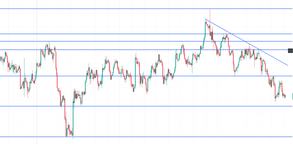 すぐ下にもサポートラインがあるため、なかなか下がりづらい状況が続いています。