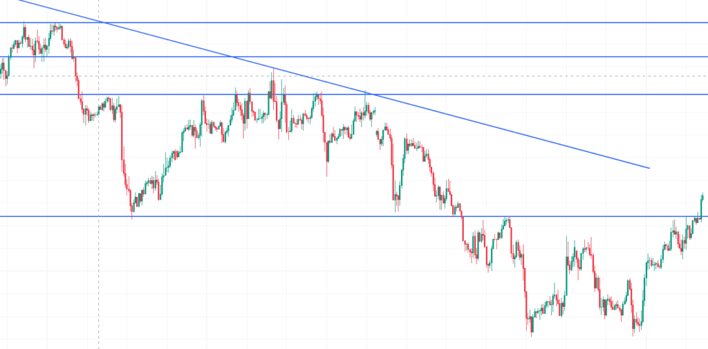 もう少し様子を見て、トレンドラインとロウソク足の関係性が確定するのを待ちます。