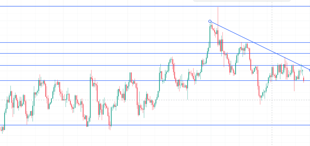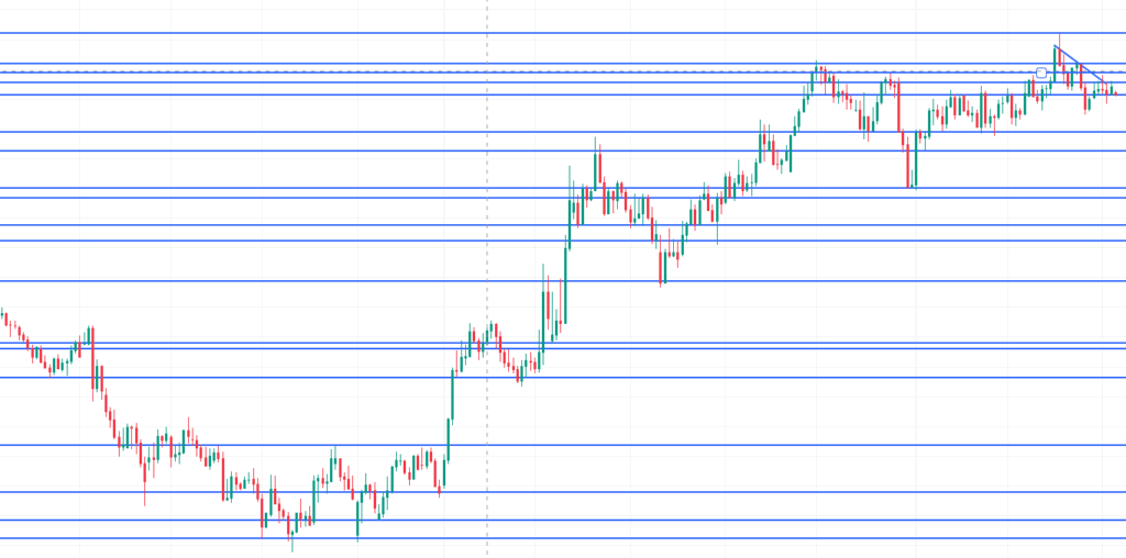 その後にサポートラインかレジスタンスラインをブレイクするまでは待機。