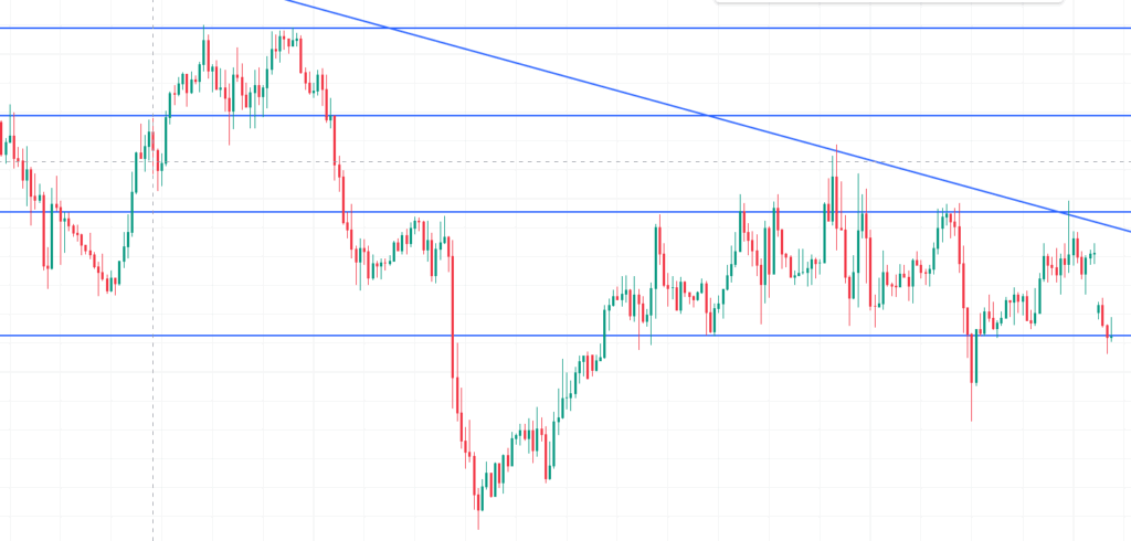 4時間足ではサポートラインに支えられている形で下げ止まっています。