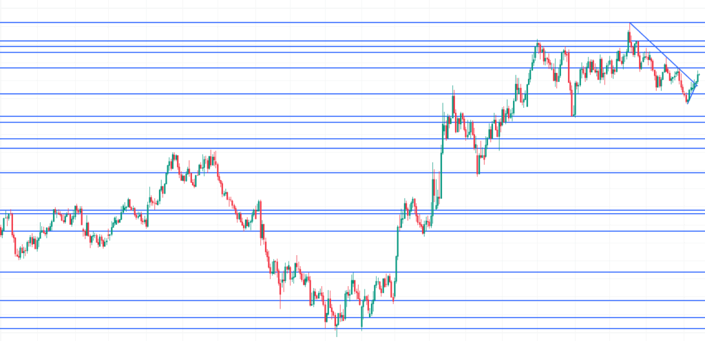 まずはこのレジスタンスラインに対してロウソク足がどう振る舞うのかを確認します。