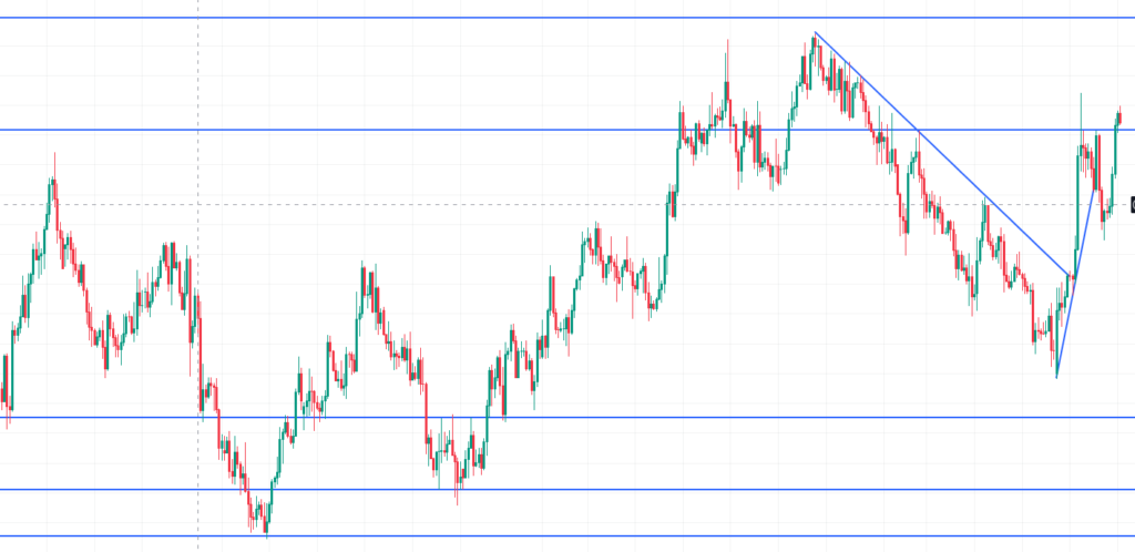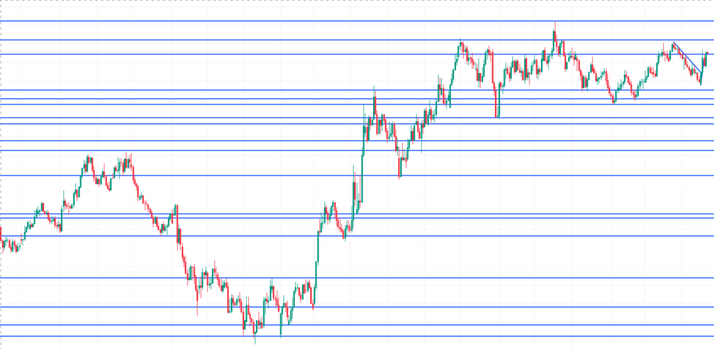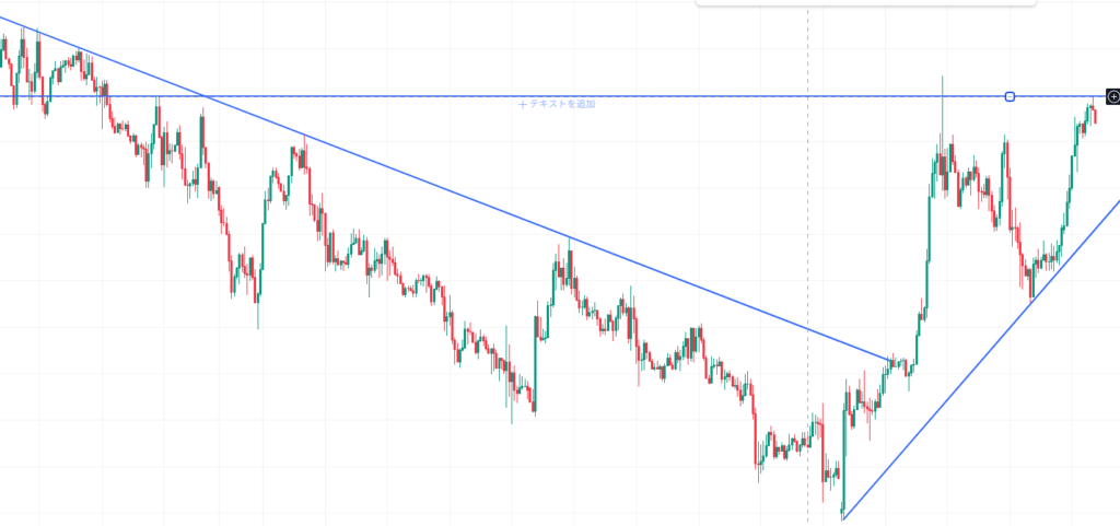 いろいろライン(レジスタンスラインとトレンドライン)が機能しなくなってきているため、ラインを引き直します。