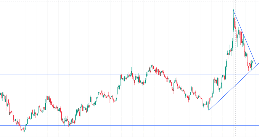 ただ上昇のトレンドラインは仮に引いたもので、あまり信頼性がありません。