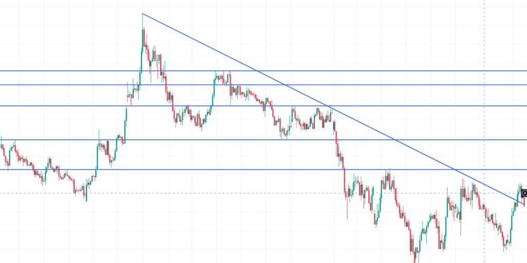 4時間足ではトレンドラインをブレイクし、一時上昇。