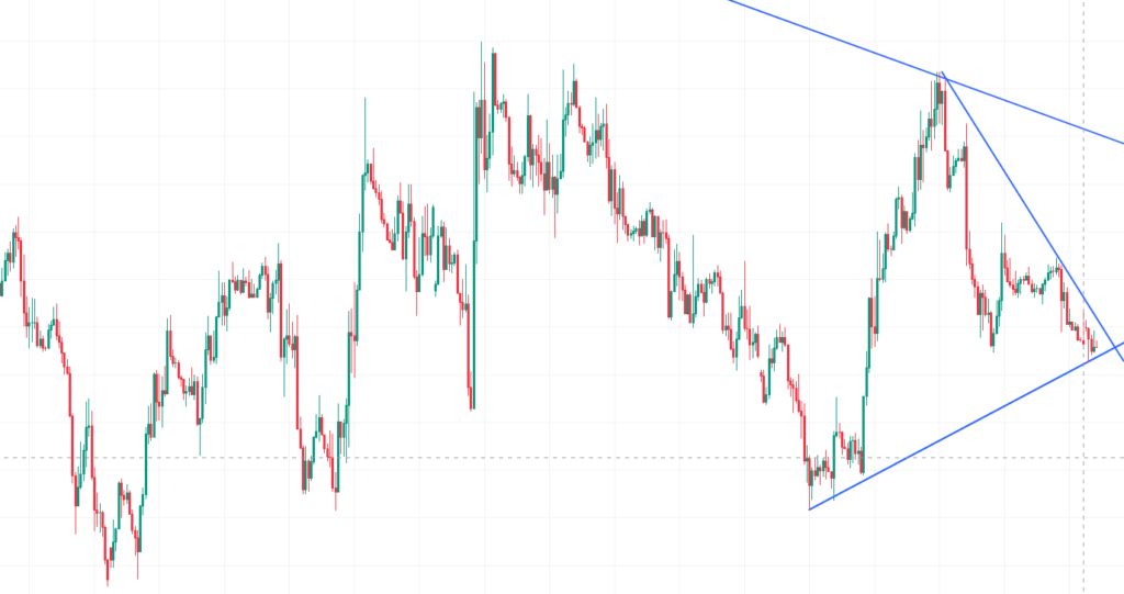 三角持ち合いを下にブレイクすれば、戻り売りのタイミングとなりそうです。